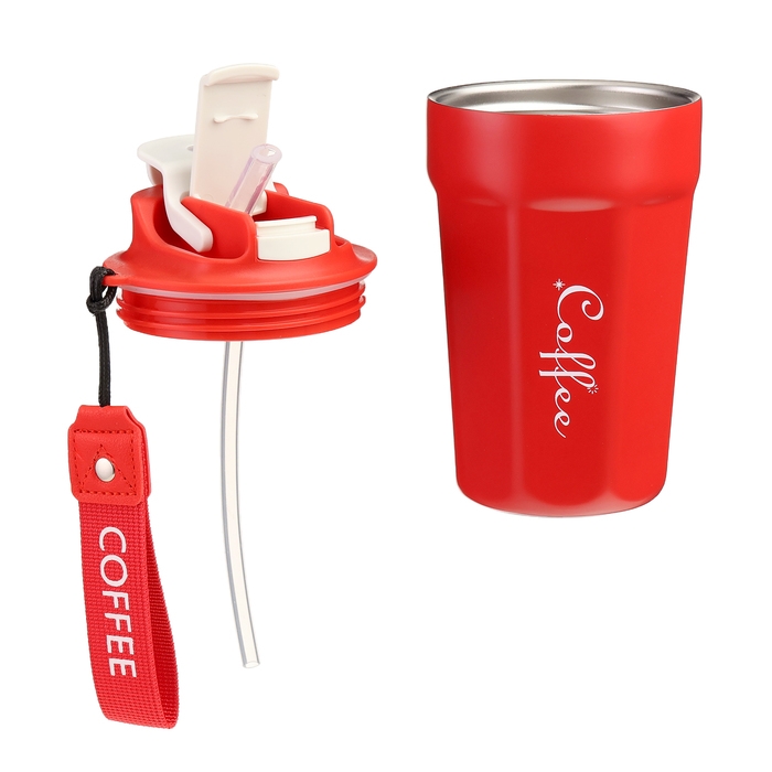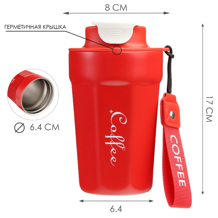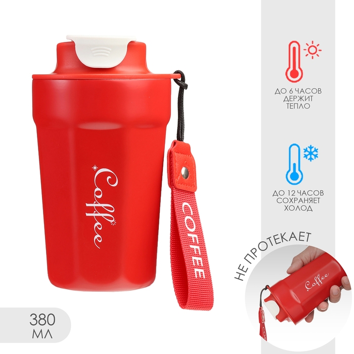 Термокружка, 380 мл, Coffee "Мастер К", сохраняет тепло до 6 ч, красная