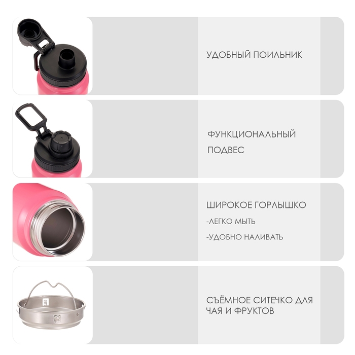 Термос, серия: Экстрим, "Мастер К", 1 л, сохраняет тепло до 8 ч, розовый