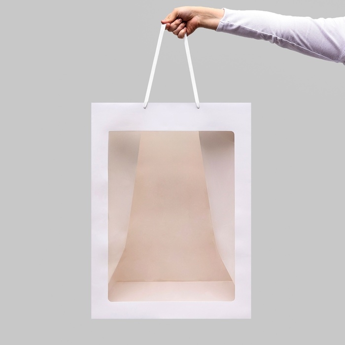 Пакет подарочный с окном, белый, 60 х 45 х 35 см