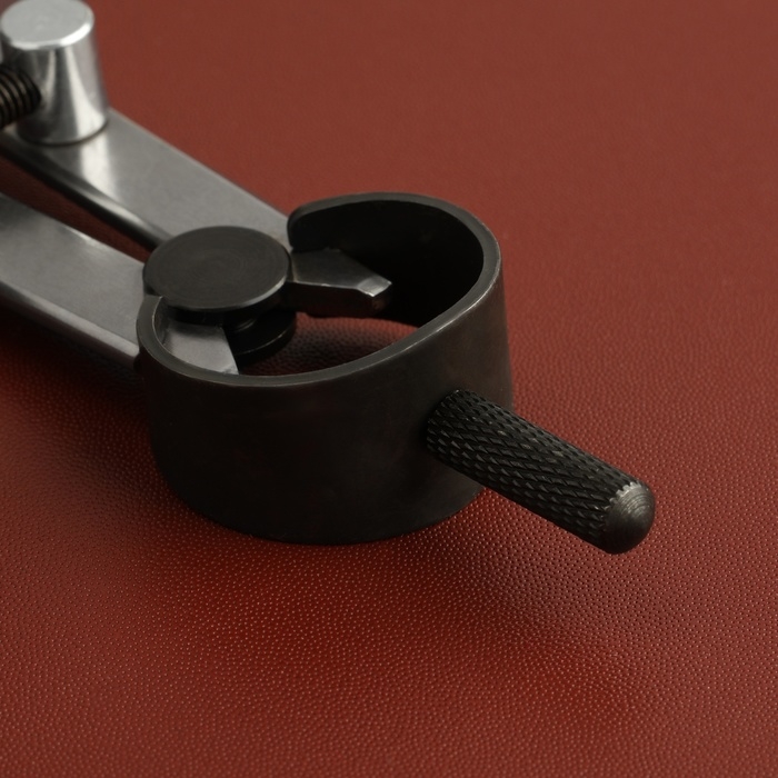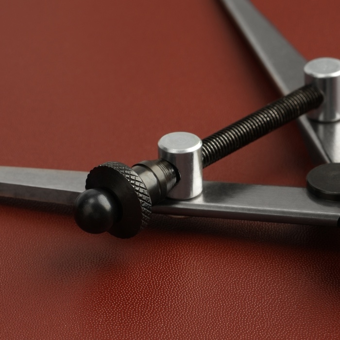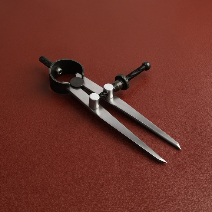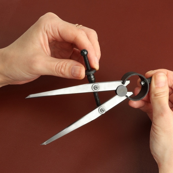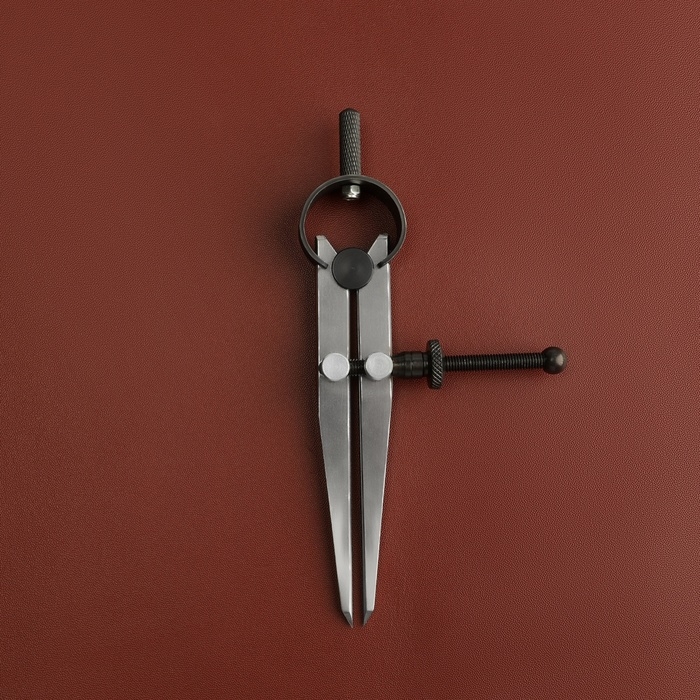 Разметочный кронциркуль — один из самых необходимых инструментов для кожевника. Он предназначен для нанесения разметки от края, под шов, в места стыков изделия, рисунков, параллельной разметки или черчения окружностей по коже, пластмассе или металлу. Максимальное раскрытие кронциркуля составляет 10 см. Отличительной чертой этого инструмента является наличие фиксирующей гайки, которая позволяет задать определённую ширину инструмента для удобства и точности разметки.