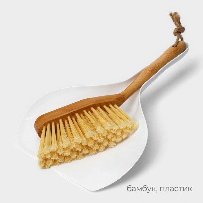 Щётка с совком Raccoon Meli, бамбуковая ручка, совок 33,5×21,5×5,5 см, щётка 30×4 см, ворс 6 см