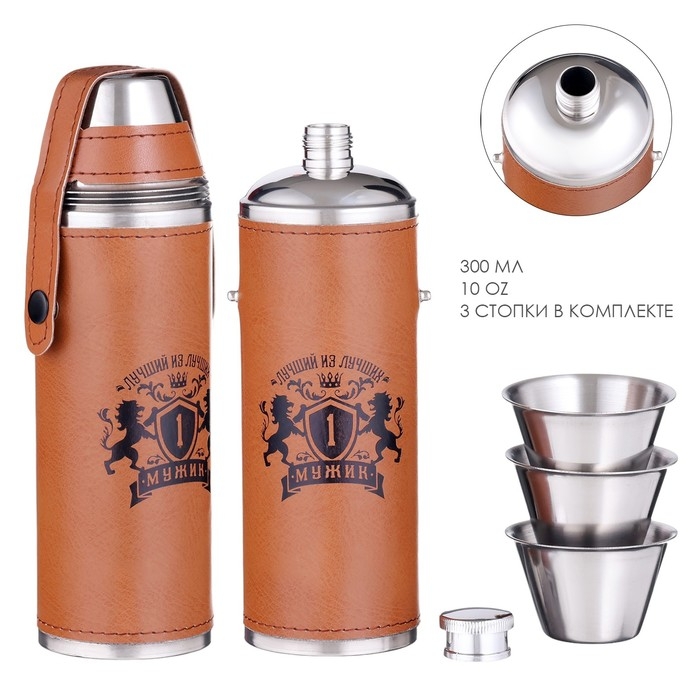Фляжка для алкоголя "Мужик", нержавеющая сталь, чехол, 300 мл, 3 стопки по 30 мл
