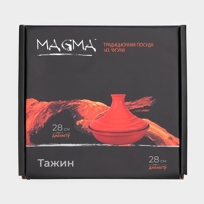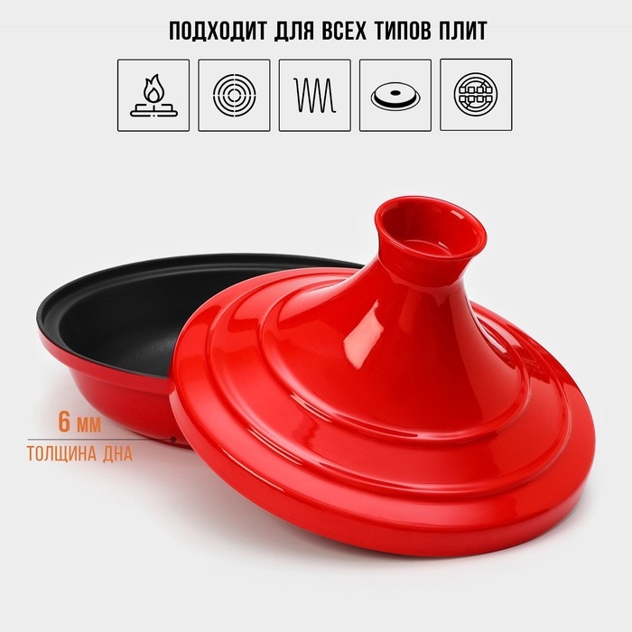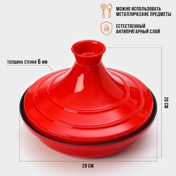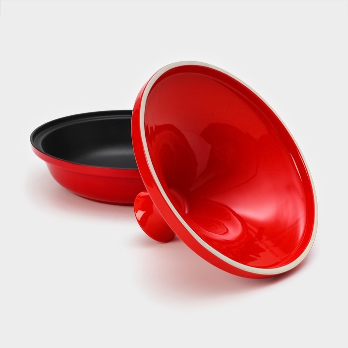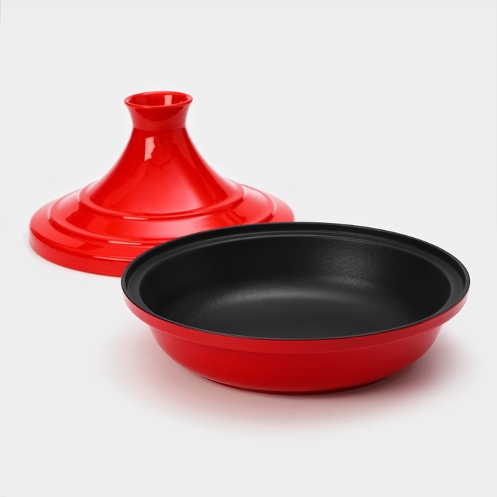 Сковорода-тажин чугунная 28×20 см, эмалированное покрытие, цвет красный