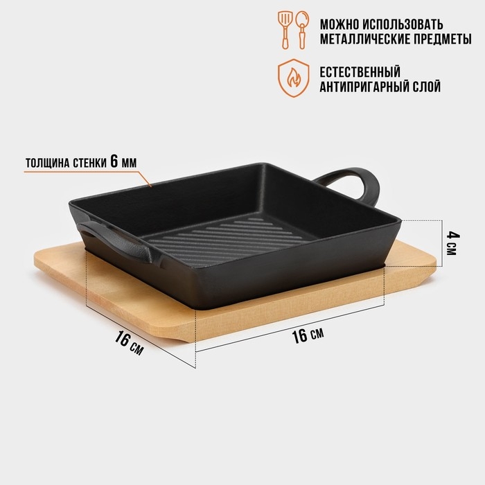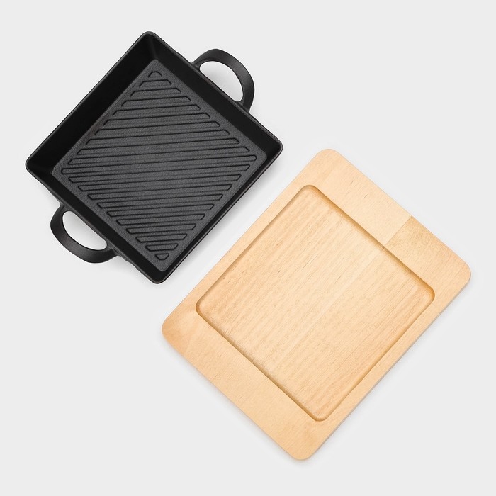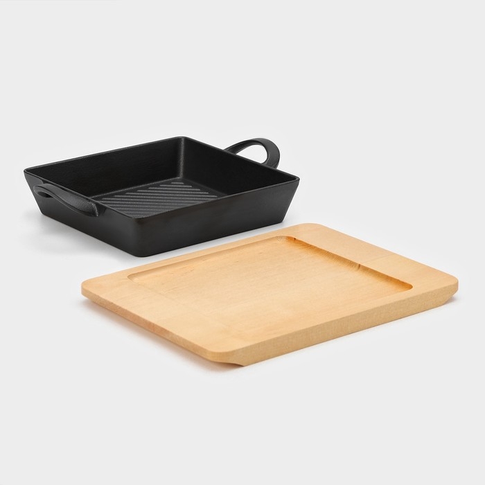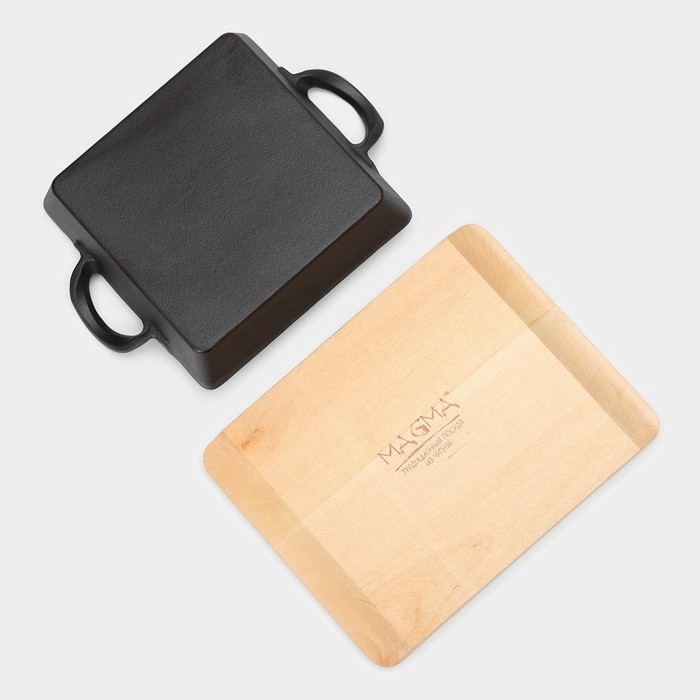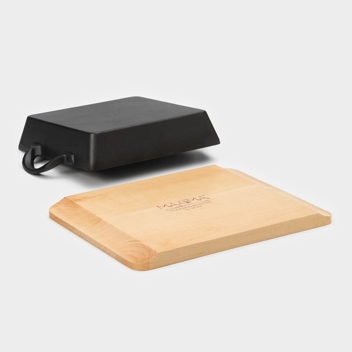 Сковорода-гриль чугунная Magma «Осан», 24×18×4 см, на деревянной подставке