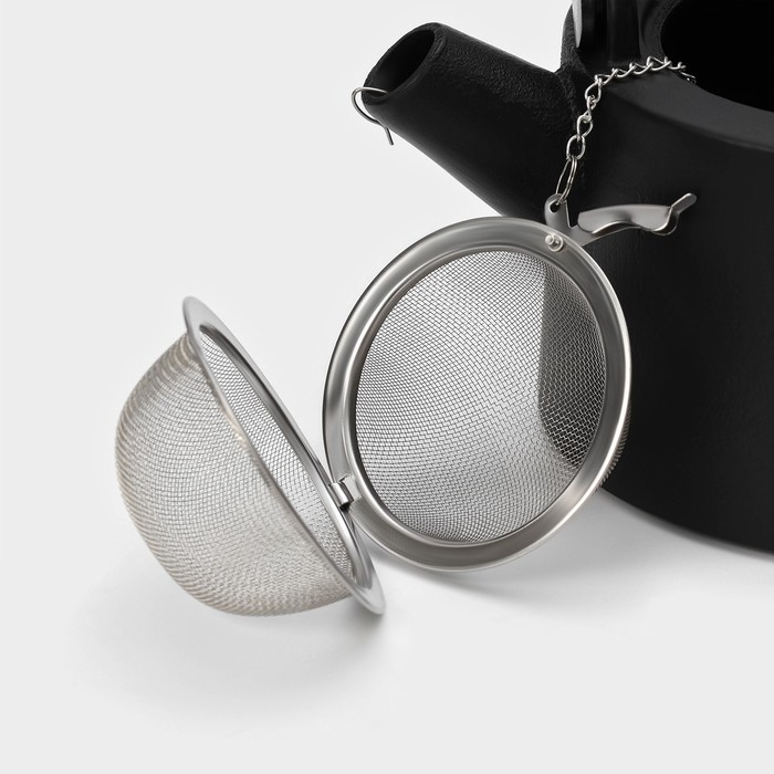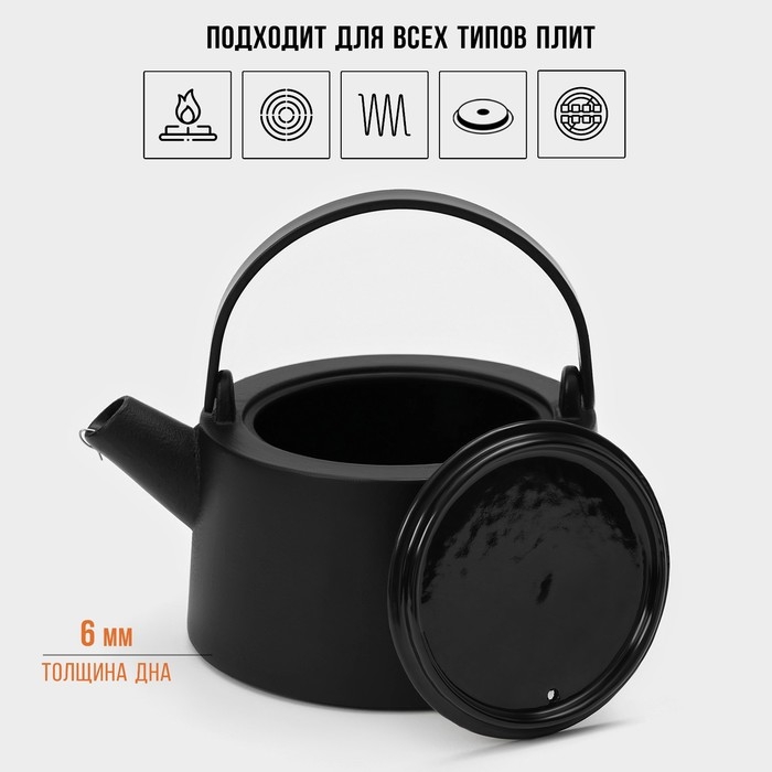 Чайник для плиты с эмалированным покрытием внутри Magma «Сайгон», 1,1 л, чугун, с ситом, индукция, цвет чёрный