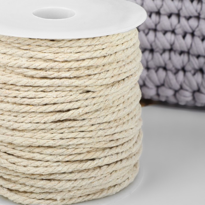 Шпагат для плетения, хлопок, d = 4 мм, 30 ± 1 м, цвет белый