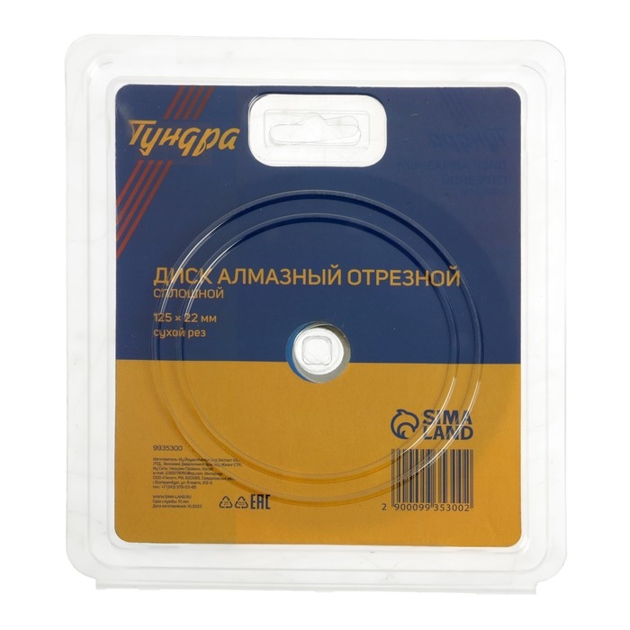 Диск алмазный отрезной ТУНДРА, сплошной, сухой рез, 125 х 22 мм