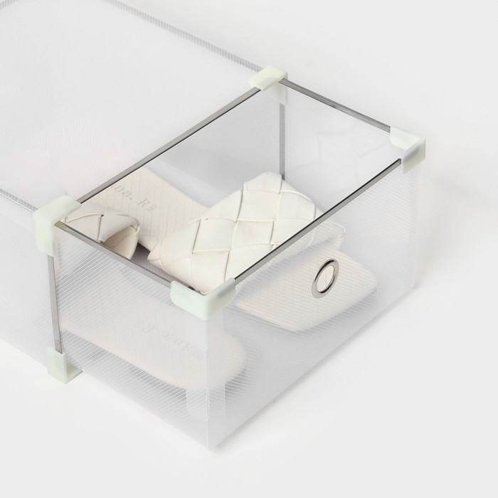 Коробка для хранения обуви выдвижная Доляна Large size, 21×33,5×12 см, 3 шт, цвет белый
