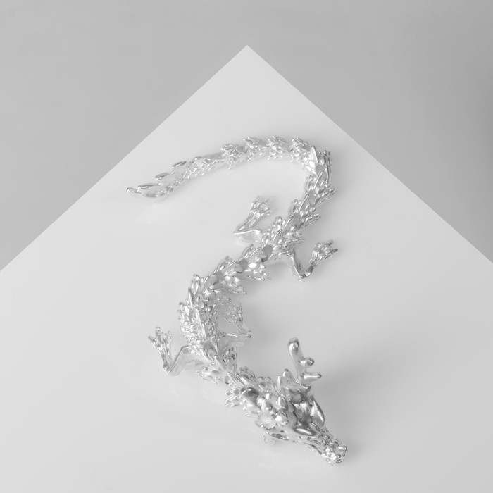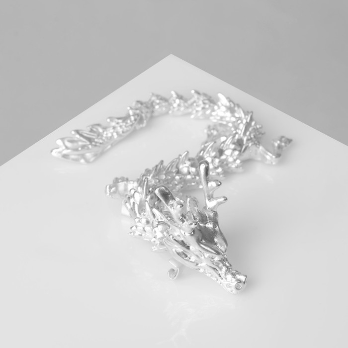 Брошь «Дракон» длинный подвижный, цвет матовое серебро