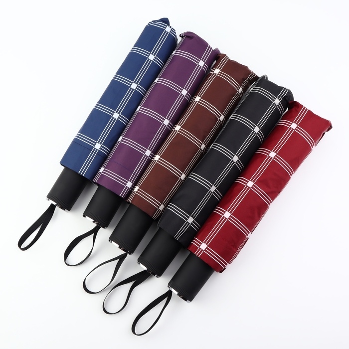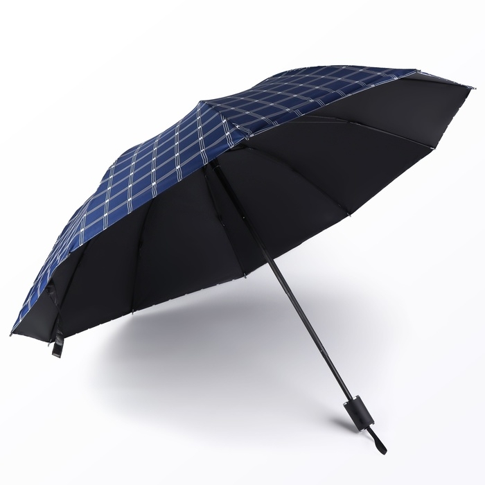 Зонт механический «Клетка», эпонж, 4 сложения, 10 спиц, R = 57/63 см, D = 126 см, цвет МИКС
