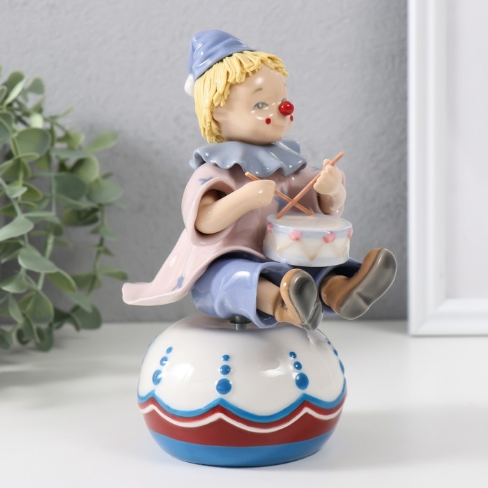 Сувенир керамика музыкальный "Клоун с барабаном, сидит на чашке" 9,5х12,5х19,5 см