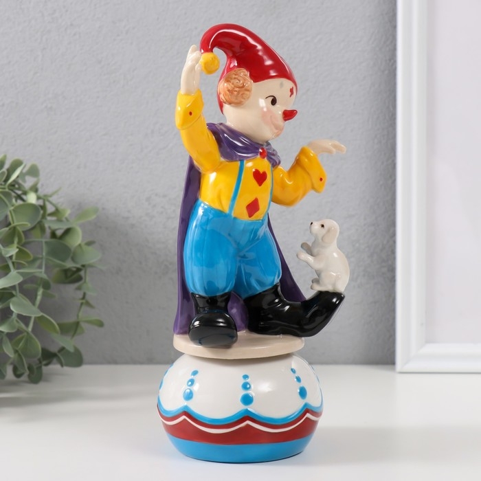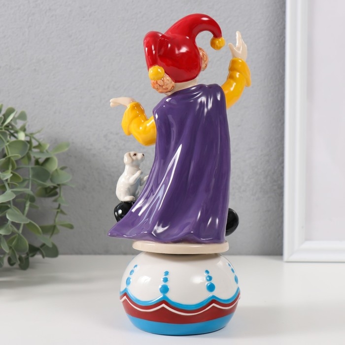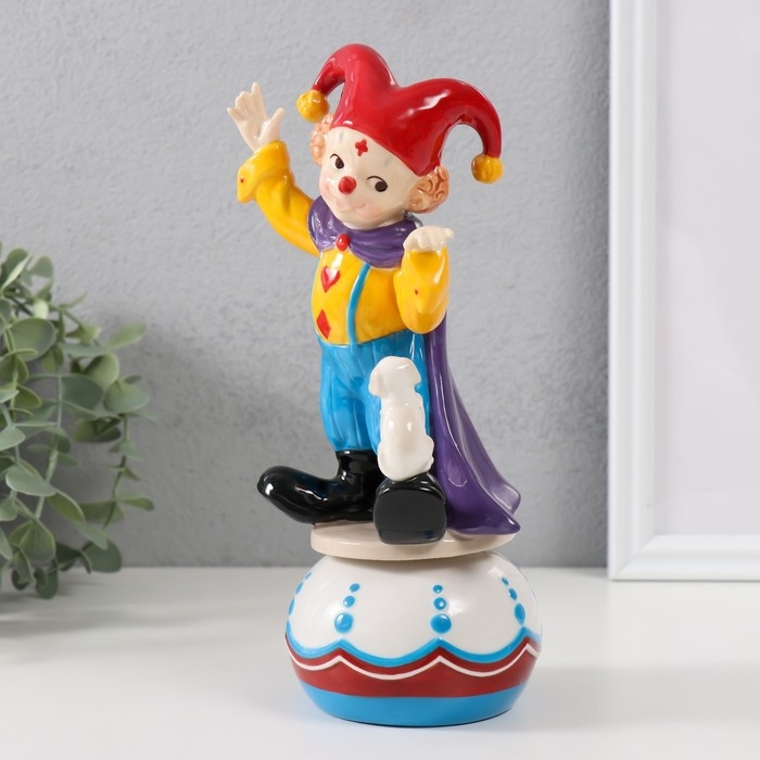 Сувенир керамика музыкальный "Клоун с пёсиком, стоит на шаре" 9х10х20,7 см