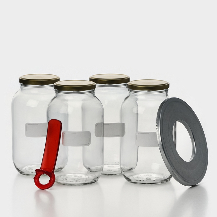 Набор стеклянных банок с чёрной полимерной крышкой, ТО-82 мм, 720 мл, 4 шт.
