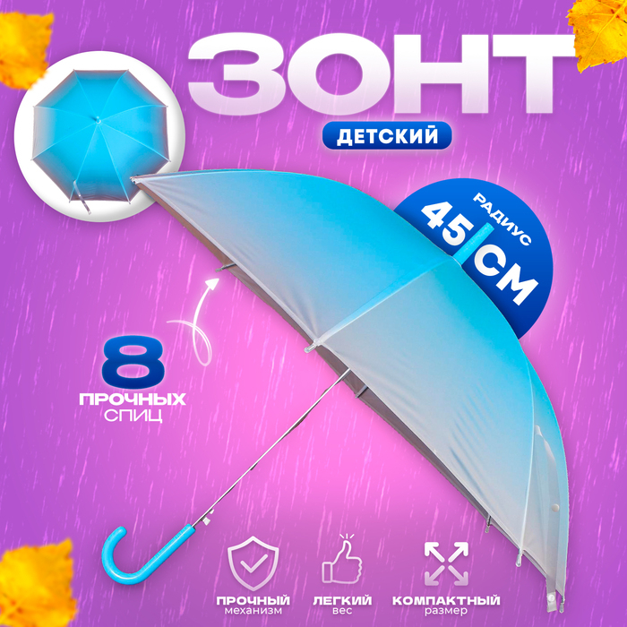 Зонт детский «Омбре», полуавтоматический, r=45см, цвет голубой
