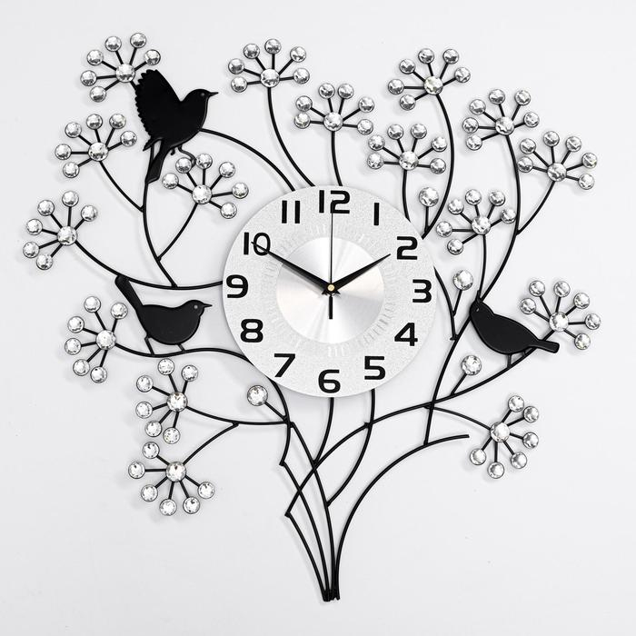 Часы настенные интерьерные большие "Букет", бесшумные, циферблат d-22 см, 60 x 60 см