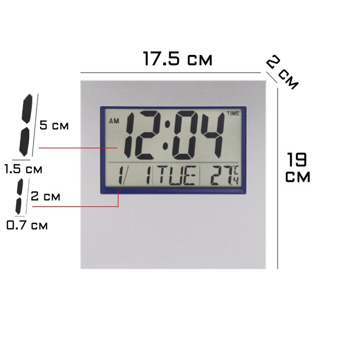 Часы-будильник электронные, настольные, настенные, 17.5 х 2 х 19 см