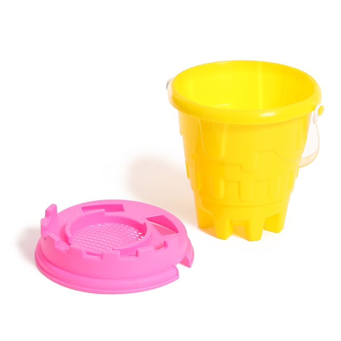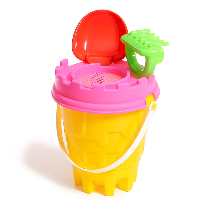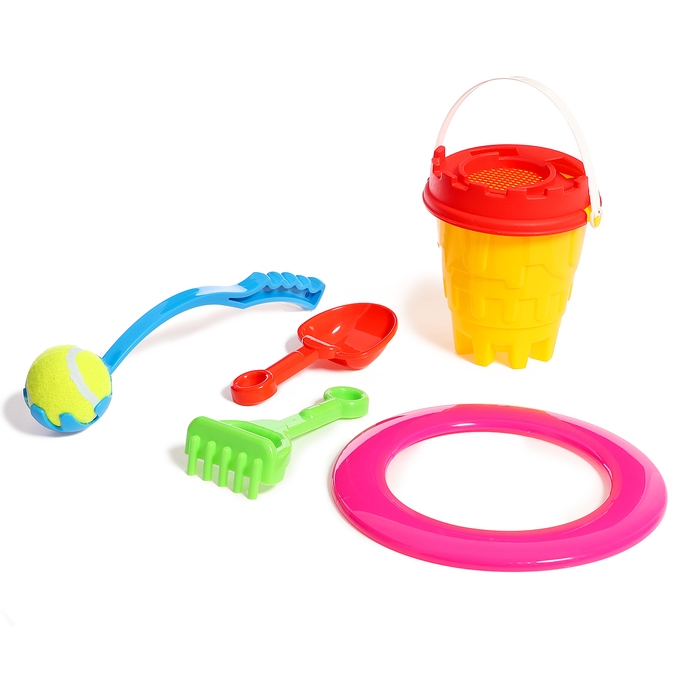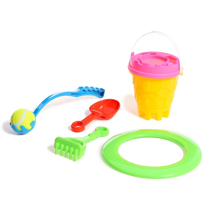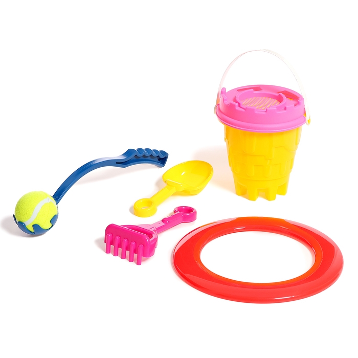Песочный набор №2 «Пончик»: ведро, сито, совок, грабли, бросатель с мячом, кольцо, МИКС