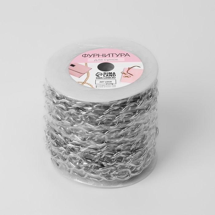 Цепочка для сумки, металлическая, 19 × 15 мм, 10 ± 0,5 м, цвет серебряный