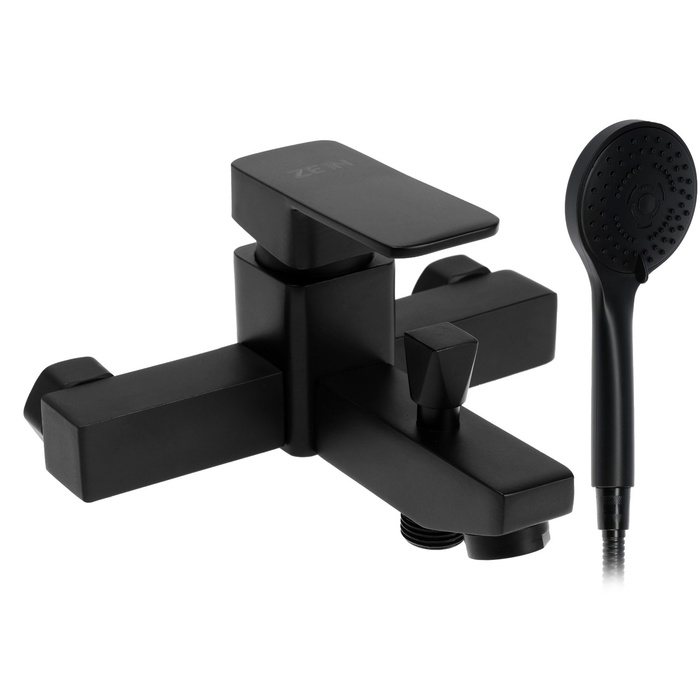 Смеситель для ванны ZEIN Z3843, однорычажный, душевой набор, лейка 5 режимов, черный