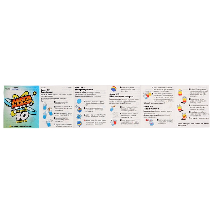 С набором для опытов «Меганабор для опытов» ребёнок проведёт 10 увлекательных экспериментов и узнает много интересной информации.
