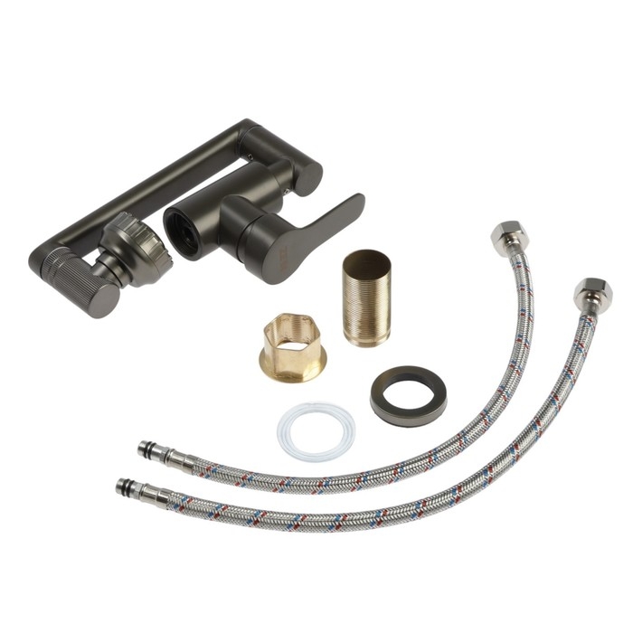 Смеситель для кухни ZEIN Z3746, однорычажный, высота регулируемая, аэратор 2 режима, графит