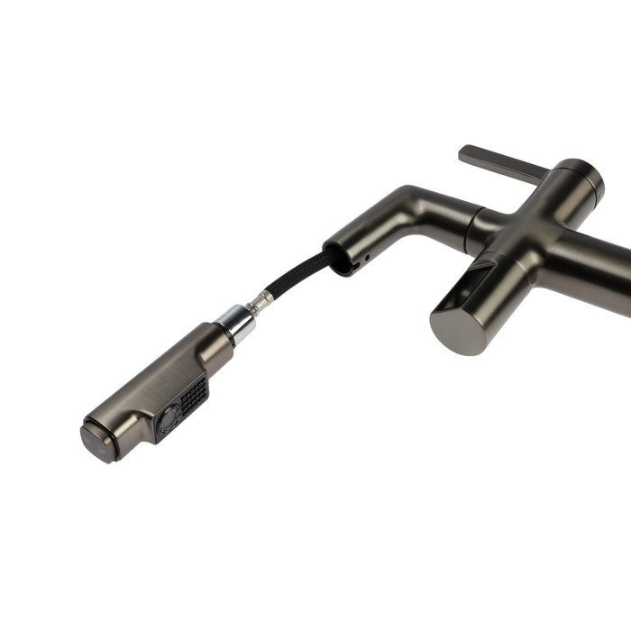 Аэратор может вытягиваться и имеет два режима подачи воды, что делает его более удобным и многофункциональным.