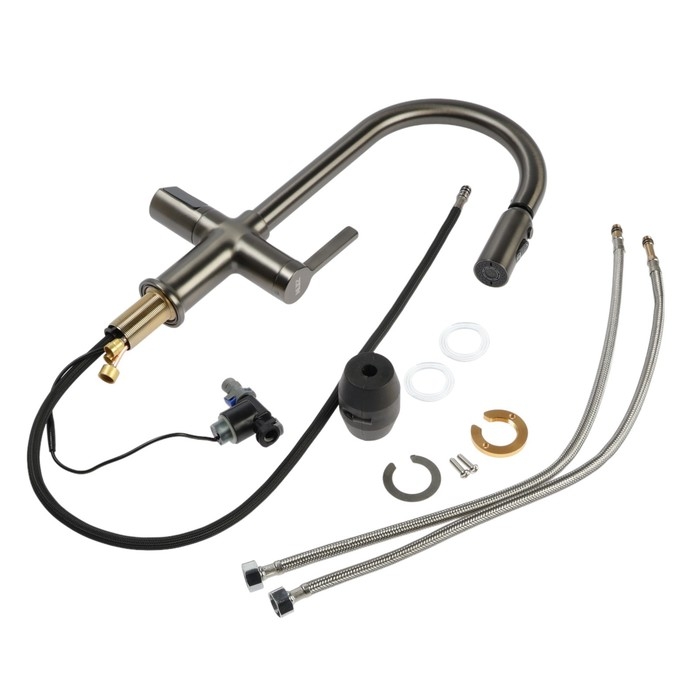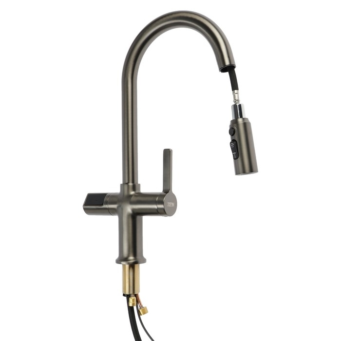 Смеситель для кухни ZEIN Z3783, экран температуры, вытяжной излив, высота 23 см, 3 режима