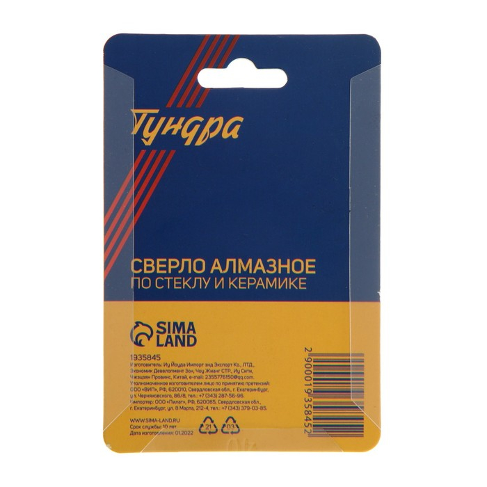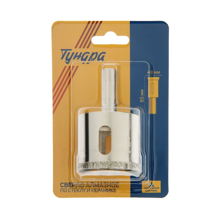 Сверло алмазное по стеклу и керамике ТУНДРА, трехгранный хвостовик, 40 х 65 мм