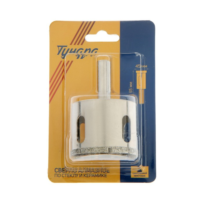 Сверло алмазное по стеклу и керамике ТУНДРА, трехгранный хвостовик, 45 х 65 мм