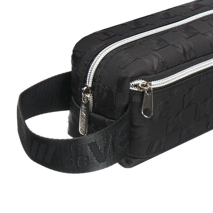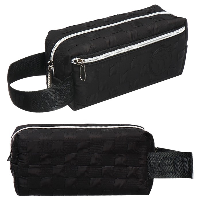 Пенал "deVENTE. Bear Collection" 21x9x9 см, прямоугольный для 130 предметов, высококачественный нейлон, отделение на молнии, наружный карман на молнии, с ручкой-жаккардовой репсовой лентой, с каучуковой аппликацией, черный.