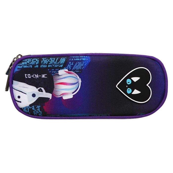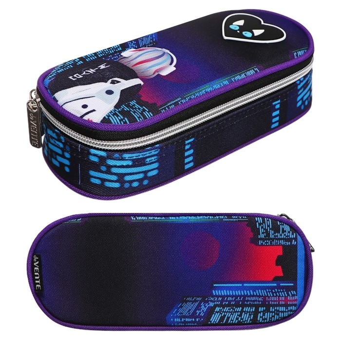 Пенал "deVENTE. City Girl" 21x8x5 см, овальный для 50 предметов, с внутренним органайзером-створкой, текстильный с каучуковой аппликацией, на молнии.
