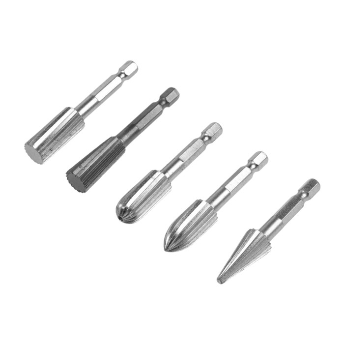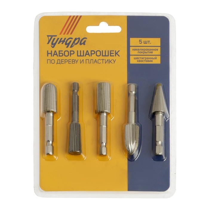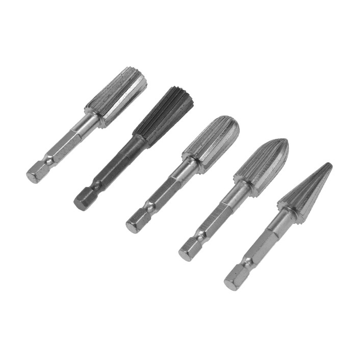 Набор шарошек по дереву и пластику ТУНДРА, никелированное покрытие, шстигр. хвостовик, 5 шт. 98464