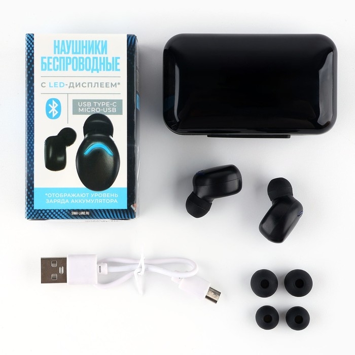 Наушники беспроводные VBT 1.16, TWS, вакуумные, BT5.0, 40/250 мАч, фонарик, чёрные