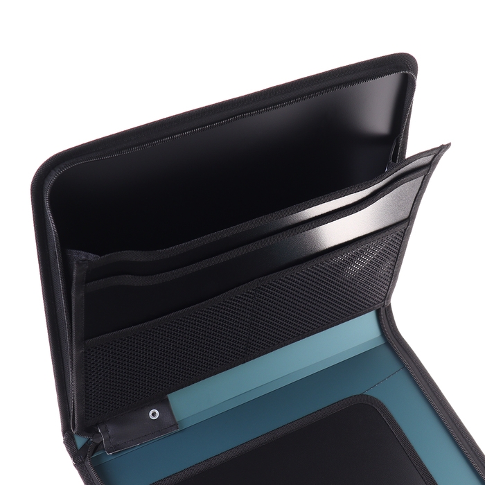Папка на молнии А4, 2 отделения, Calligrata, 350 х 282 х 33 мм, пластик, 4 кармана, бизнес-класс, зелёный металлик