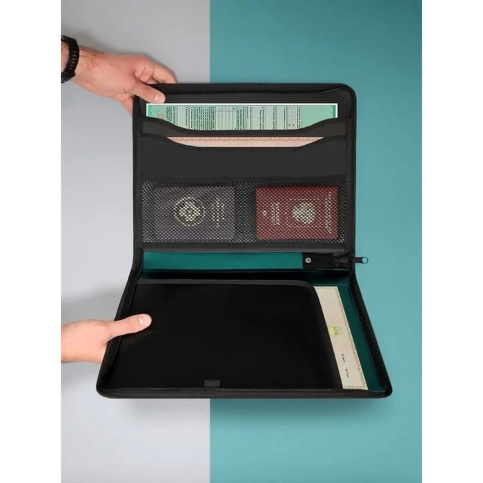 Папка на молнии Calligrata предназначена для переноски документов, а также их хранения. Незаменима в работе и учебе, в командировках, деловых поездках, путешествиях. Изготовлена из прочного черного полипропилена толщиной 0,9 мм с фактурой "бисер". Формат А4 (350х282 мм). Имеет два внутренних отделения и четыре кармана. Надежный замок-молния защищает документы от механических повреждений, а также пыли и влаги. Цвет папки - зеленый металлик. Важные документы и ценные бумаги всегда требуют повышенного внимания и деликатного обращения. Их безопасность и опрятный внешний вид обеспечит папка Calligrata. Организовать деятельность сотрудников, нацеленную на высокий результат, помогут товары нашего интернет-магазина!