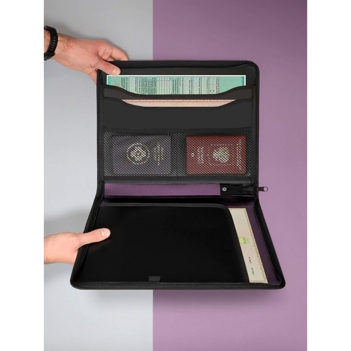 Папка на молнии А4, 2 отделения, Calligrata, 350 х 282 х 33 мм, пластик, 4 кармана, бизнес-класс, черная