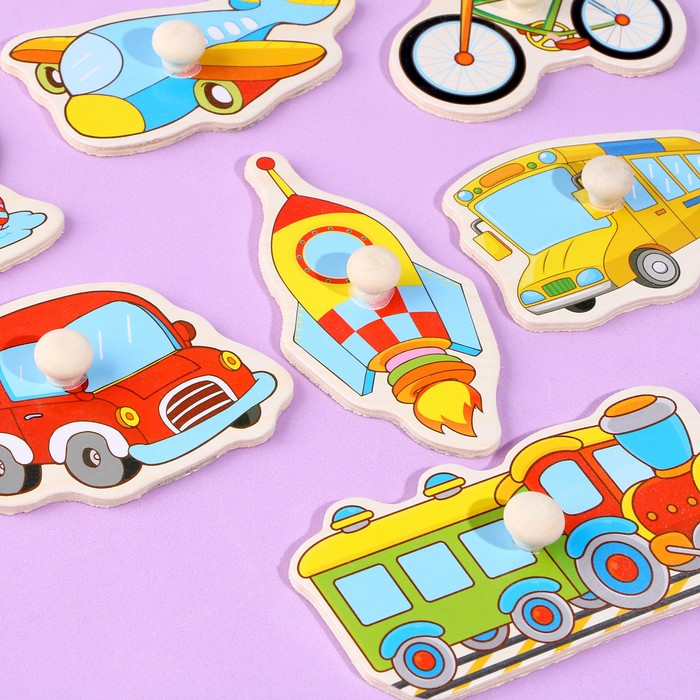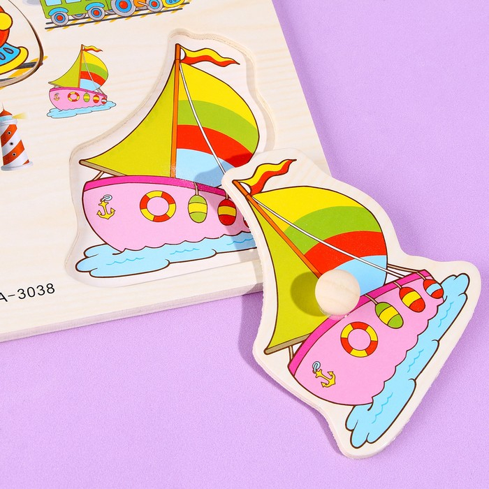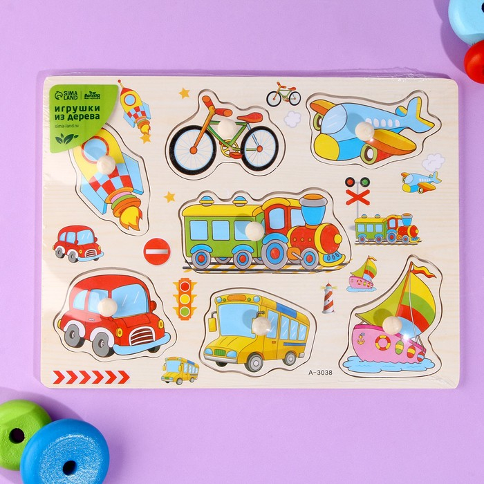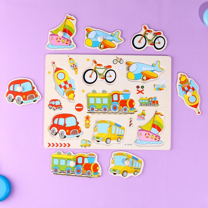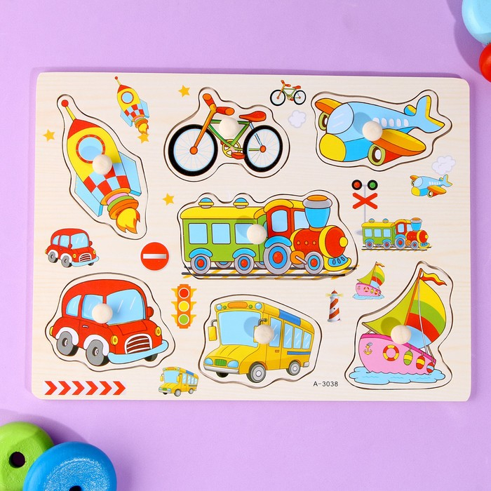 С помощью рамки-вкладыша ребёнок познакомится с транспортом. Для большей продуктивности занимайтесь вместе с ребёнком и расскажите, какие виды транспорта существуют: водный, воздушный, наземный.