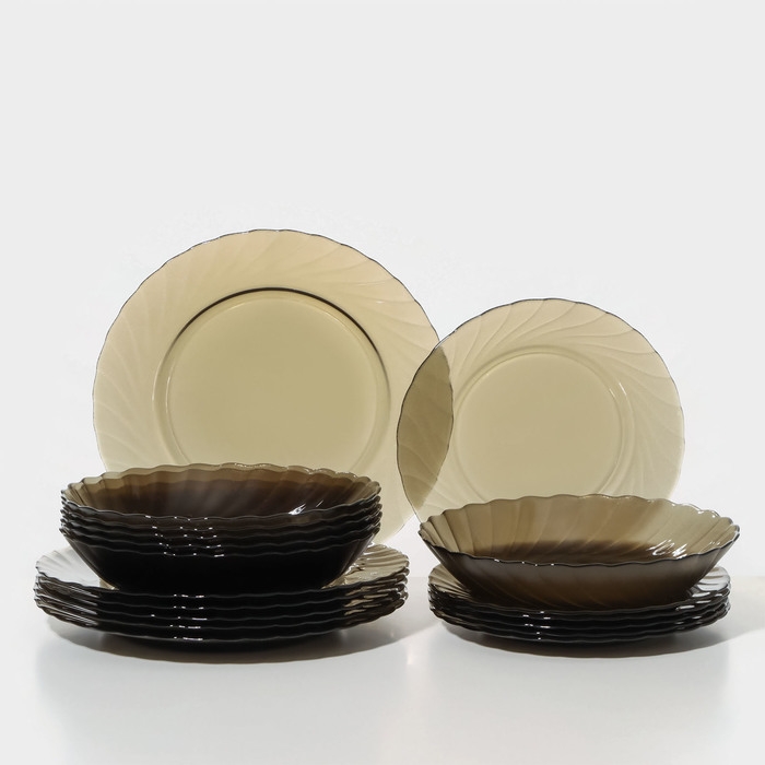 Набор тарелок стеклянных Доляна «Романтичный киви», 19 предметов: 6 десертных тарелок, 6 обеденных тарелок, 6 мисок, салатник