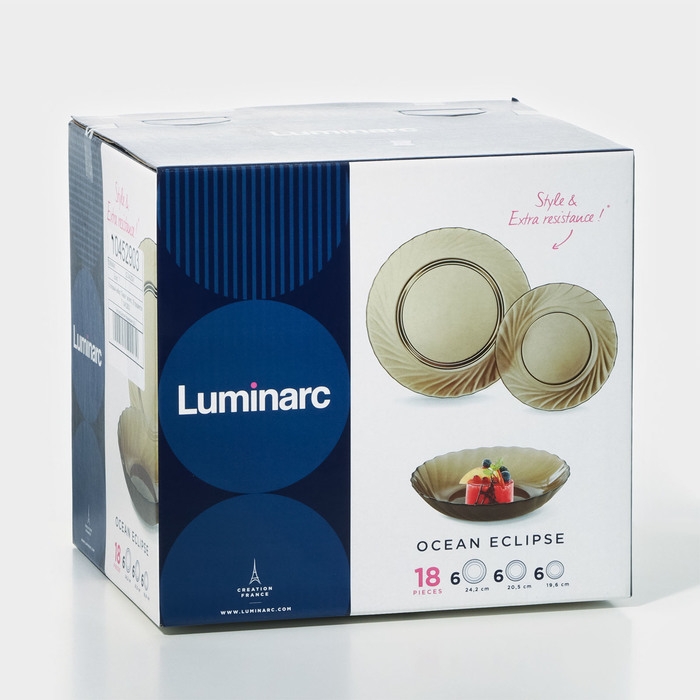 Набор тарелок стеклянных Доляна «Сладкий арбуз», 19 предметов: 6 десертных тарелок, 6 обеденных тарелок, 6 мисок, салатник