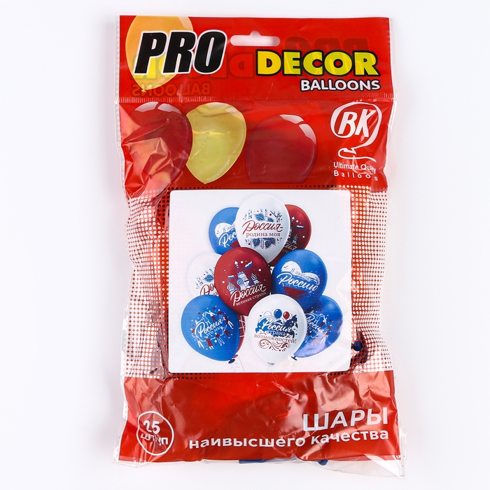 Шар латексный 12" «Россия — родина моя!», шёлк рис., 1 ст., 2 цв., набор 25 шт., МИКС