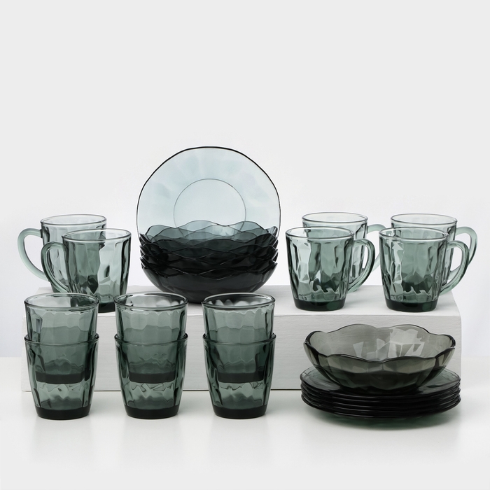 Сервиз столовый стеклянный «Амбьянте», 19 предметов, цвет коричневый