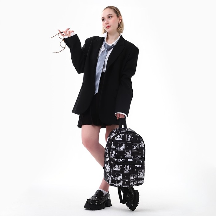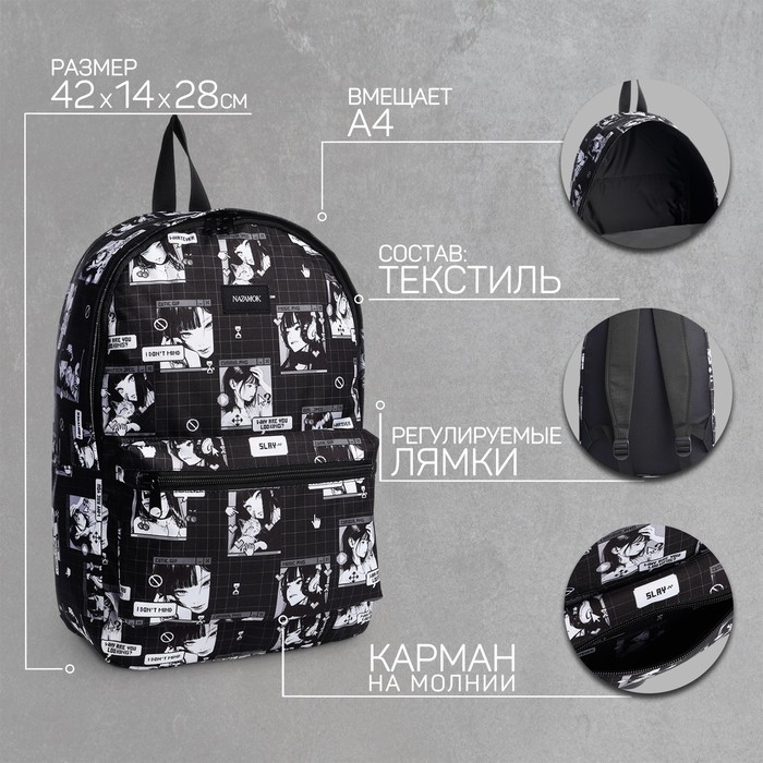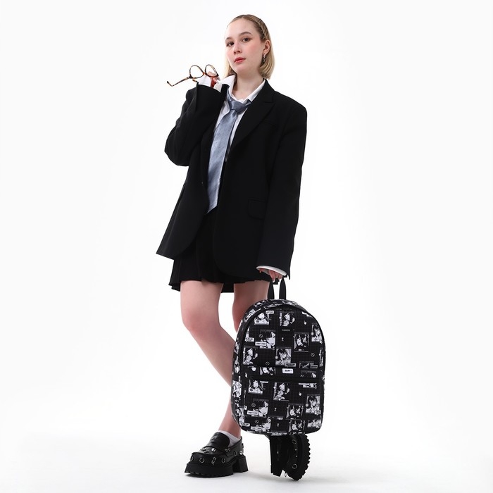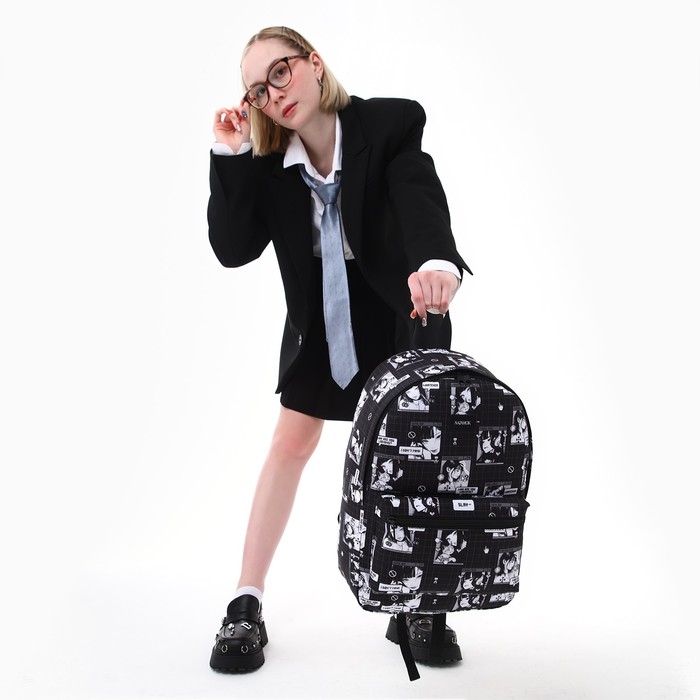Рюкзак школьный текстильный «Аниме», 42х14х28 см, цвет чёрный
