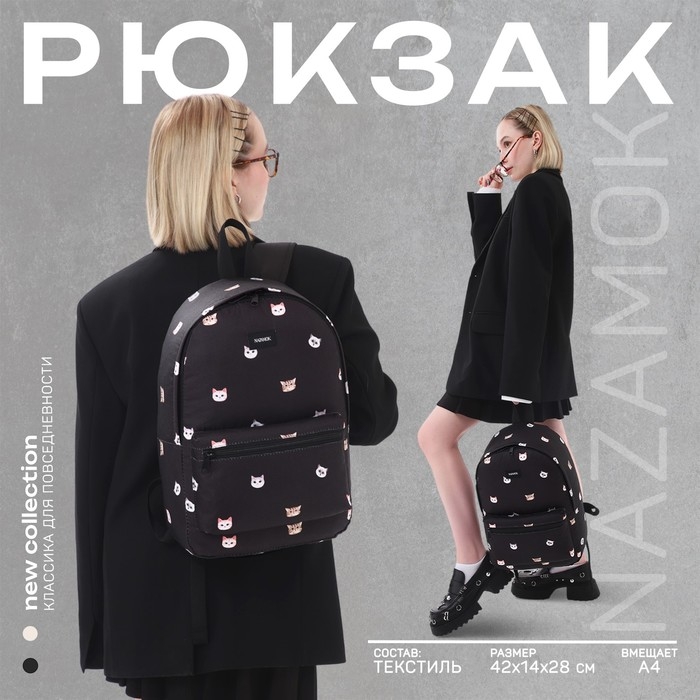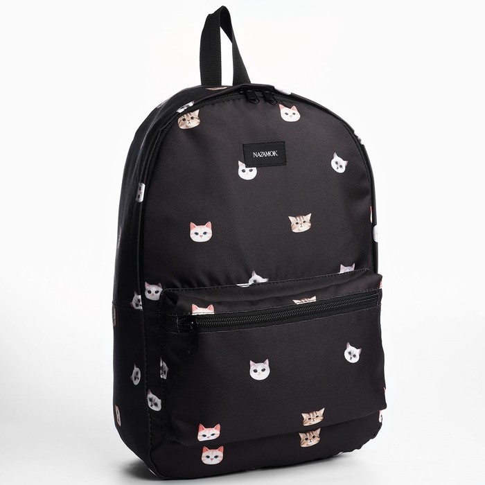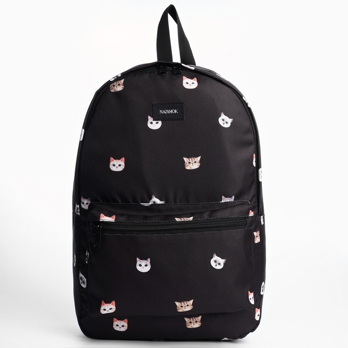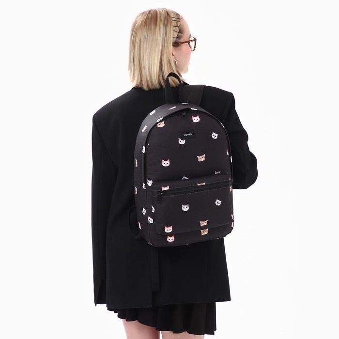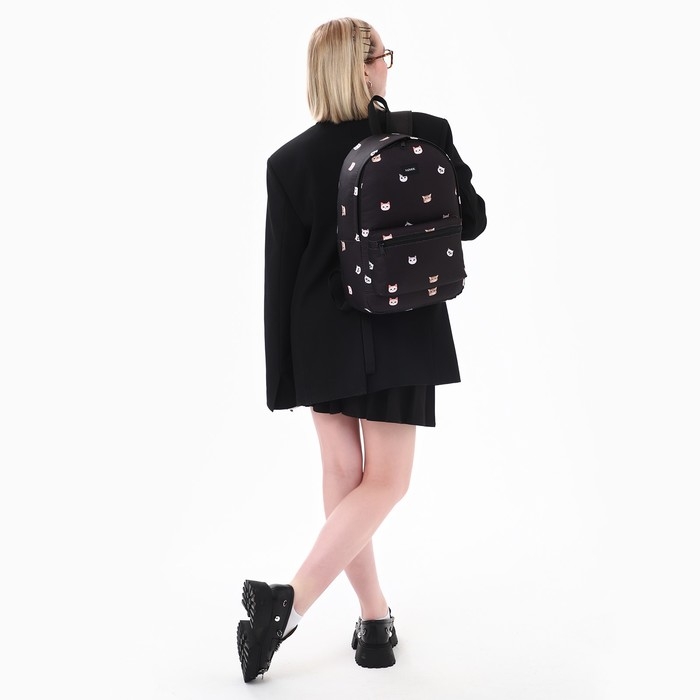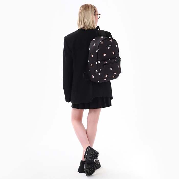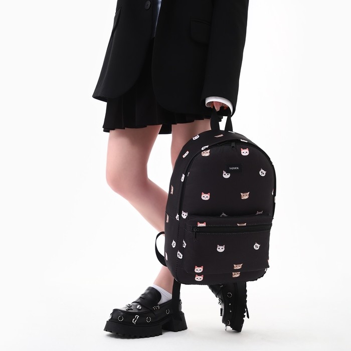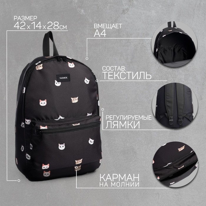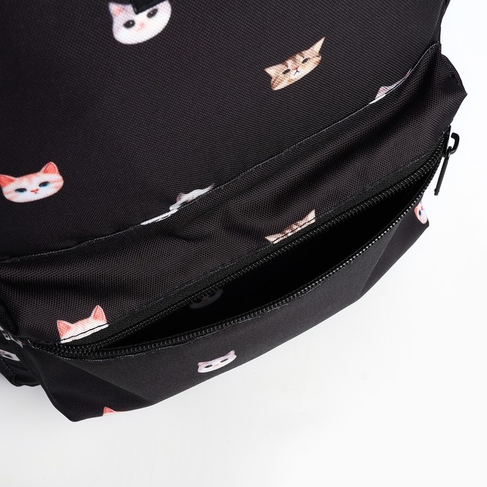 Рюкзак школьный текстильный «Коты», 42х14х28 см, цвет чёрный