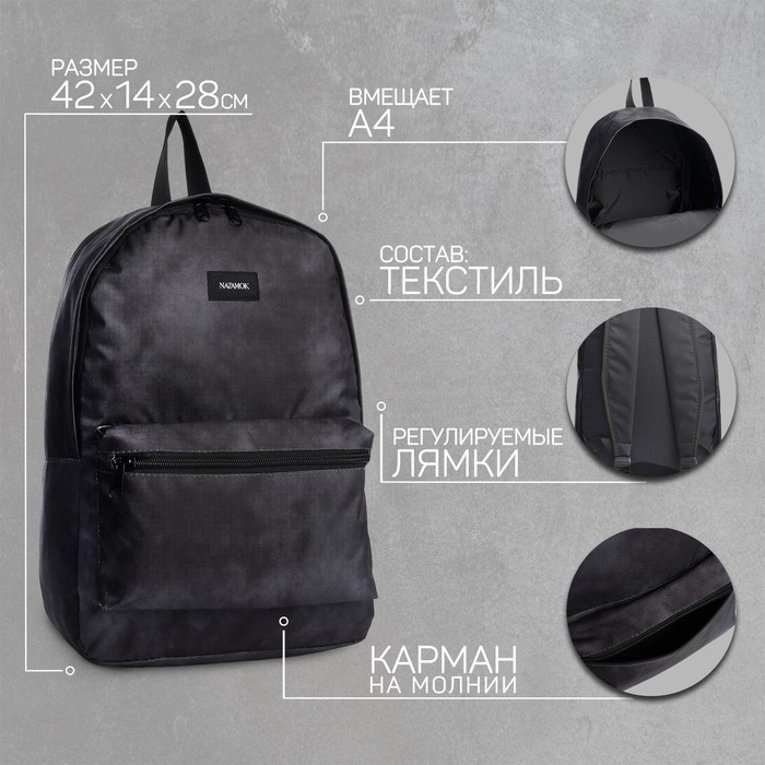 Рюкзак школьный текстильный NAZAMOK, 42х14х28 см, цвет чёрный