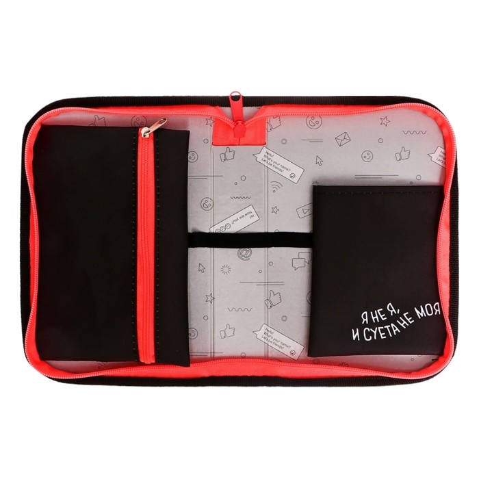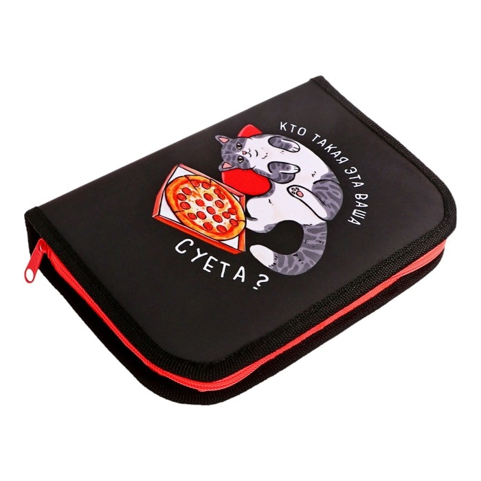 Пенал 1 секция 140 х 210 х 40 мм, откидной карман и косметичка, тканевый, Calligrata TOP Content "Кот суета"
