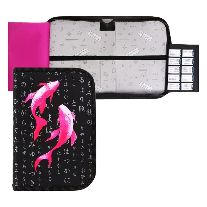 Пенал 1 секция 140 х 210 х 40 мм, откидной карман и косметичка, тканевый, Calligrata TOP Content "Рыбки"