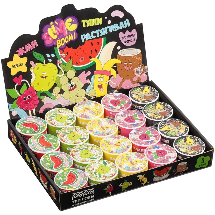 Набор слаймов мини «Slime boom. Взрывной фрукт» – это коллекция слаймов с разным наполнением, ароматом, цветом и трендовым героем на баночке.
