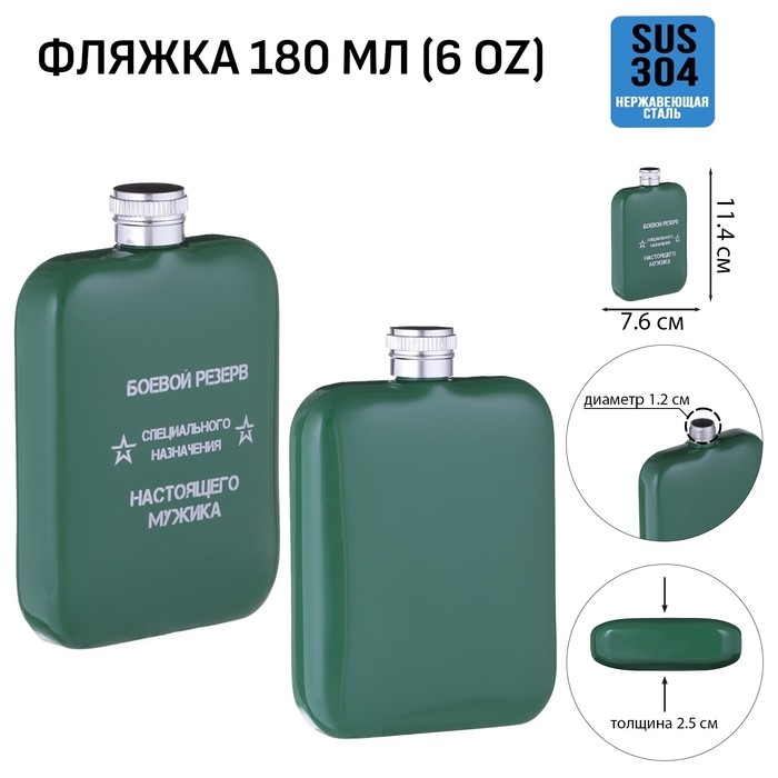 Фляжка для алкоголя "Боевой резерв", нержавеющая сталь, подарочная, 180 мл, 6 oz