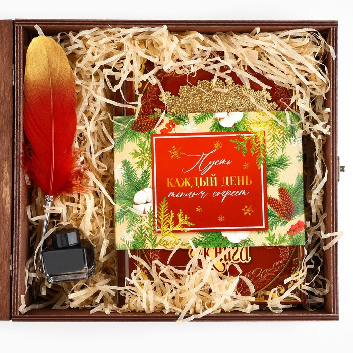 Родословная новогодняя книга с пером в шкатулке «Новый год: Каждый день», 26 х 8 х 27 см, набор