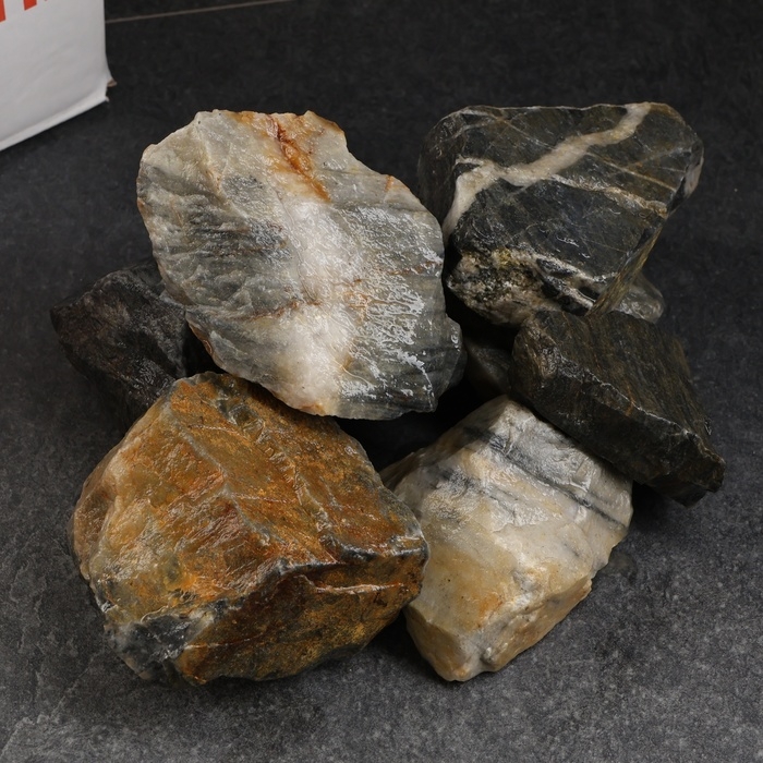 Камень для бани "Ежевичный" кварцит колотый 20 кг, фракция 70-120 мм